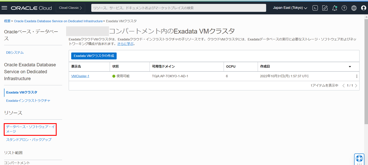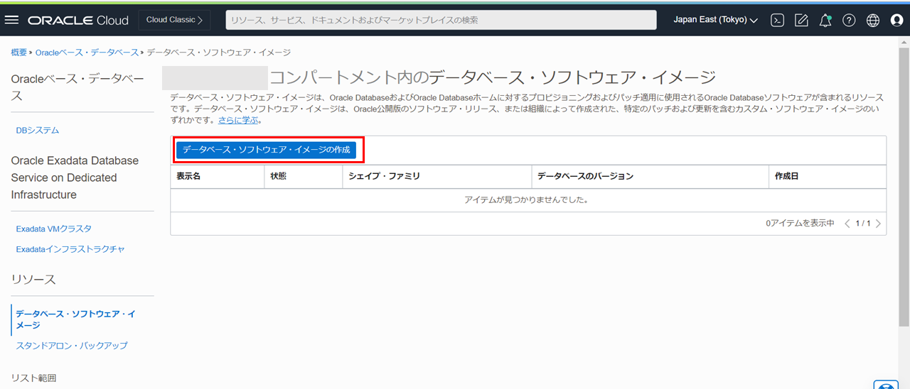 リソースの一覧からデータベース・ソフトウェア・イメージをクリックします。