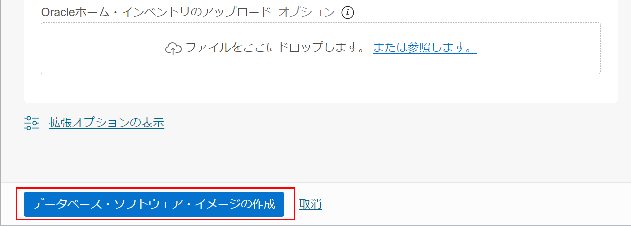 データベース・ソフトウェア・イメージの作成をクリックします。