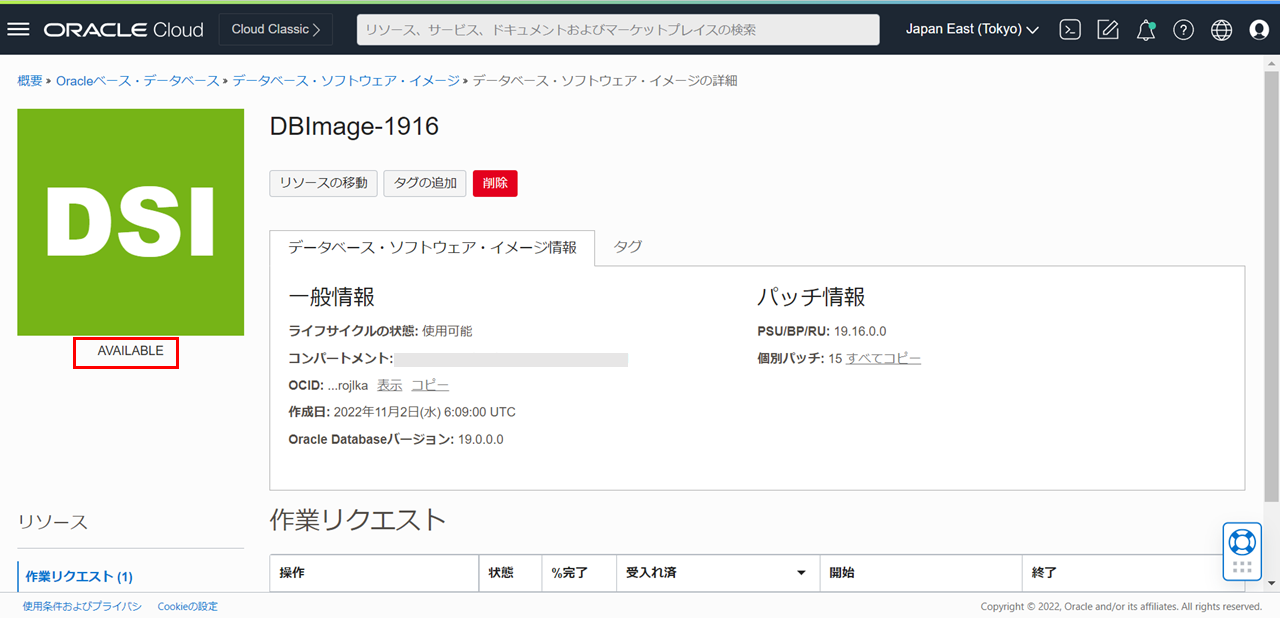 データベース・ソフトウェア・イメージの状態がPROVISIONINGからAVAILABLEに変更されたら完了です。