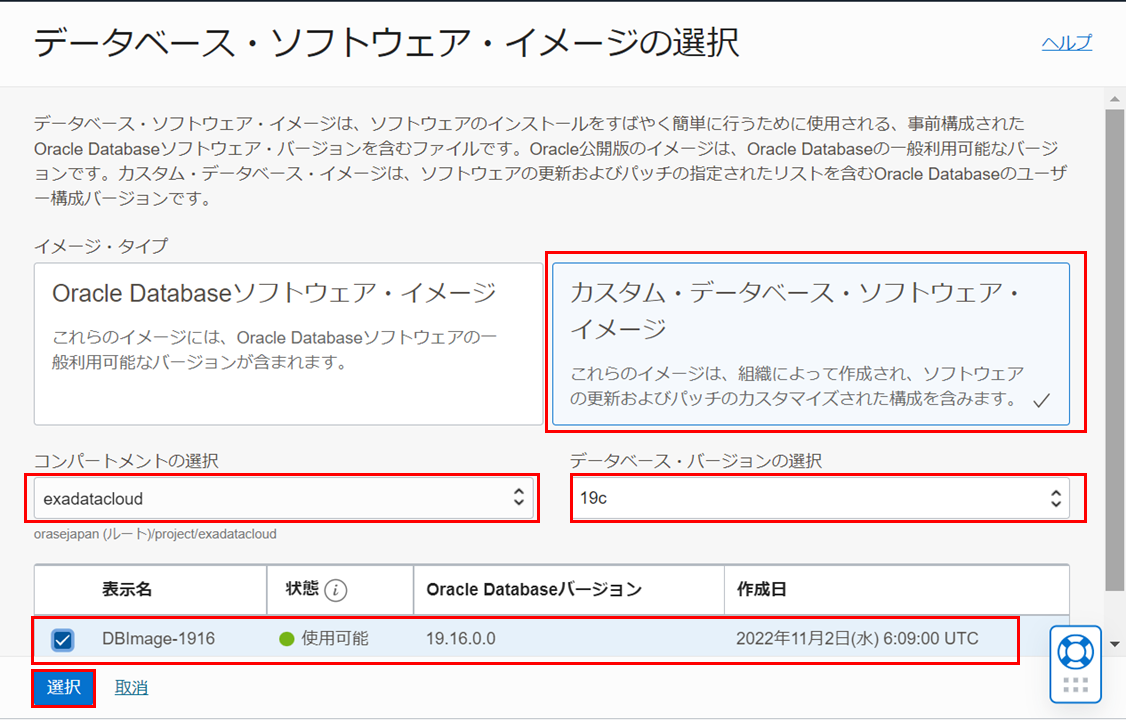 - イメージ・タイプ - カスタム・データベース・ソフトウェア・イメージを選択します。