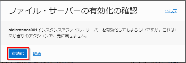 ファイル・サーバーを有効化してもよいかを確認するメッセージ・ボックスが表示されます。 「有効化」 ボタンをクリックします。