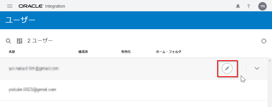 アクセスを有効化したいユーザーにマウス・ポインタを合わせると表示される、鉛筆のアイコン(「構成」 アイコン)をクリックします。