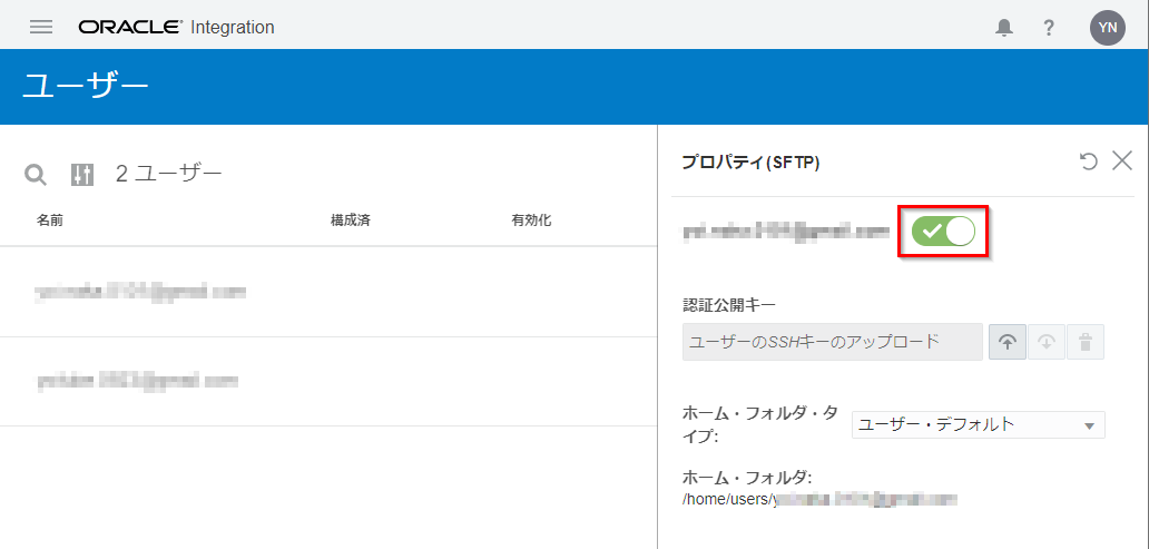 Oracle Integration Cloud のファイル・サーバーにアクセスするユーザーは、明示的に有効にする必要があります。