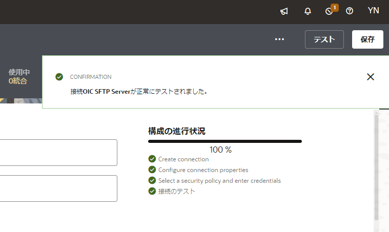 「接続 <接続名> が正常にテストされました。」 というメッセージが表示されることを確認します。
