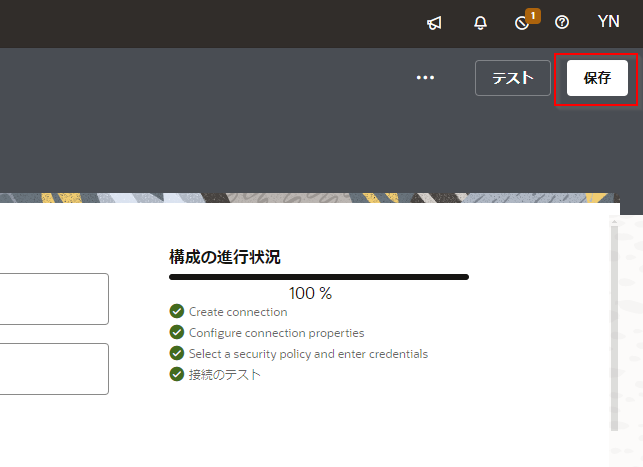 保存できたら、ページの左上に表示されている 「<」 (戻る)アイコンをクリックして、 「接続」 ページに戻ります。作成した接続のステータスが 「構成済」 になっていることを確認します。