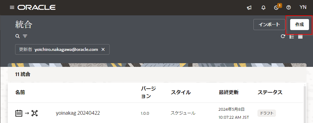 「統合」 ページが表示されたら、ページの右上にある 「作成」 ボタンをクリックします。