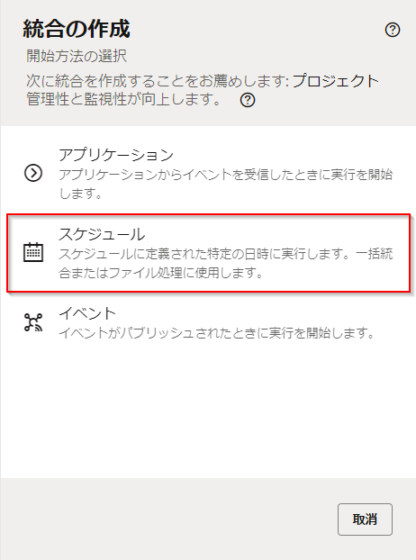 「統合スタイルの選択」 ボックスが表示されます。 「スケジュール」 をクリックします。