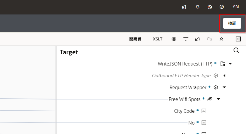 画面右上の 「検証」 ボタンをクリックします。