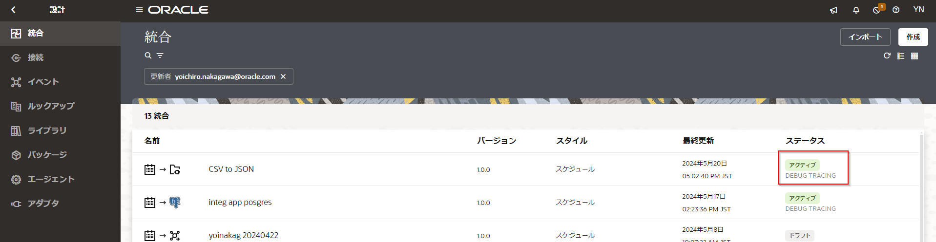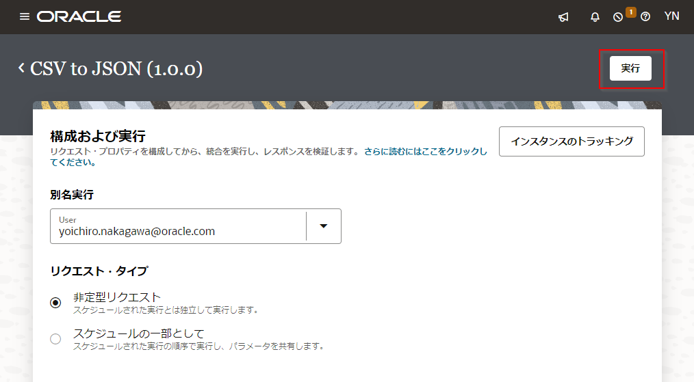 Oracle Integration Cloud では、作成した統合の実行状況をトラッキングするための設定を行う必要があります。 トラッキングの設定は次の手順で行います。