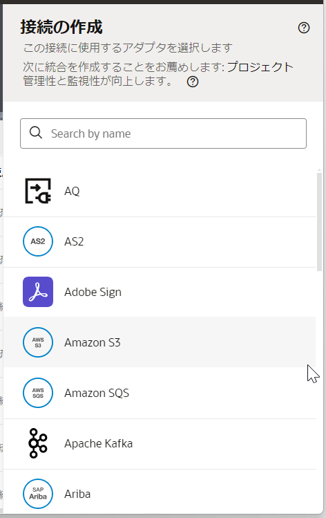 「接続の作成 - アダプタの選択」 ボックスが表示されたら、 「検索」 フィールドに