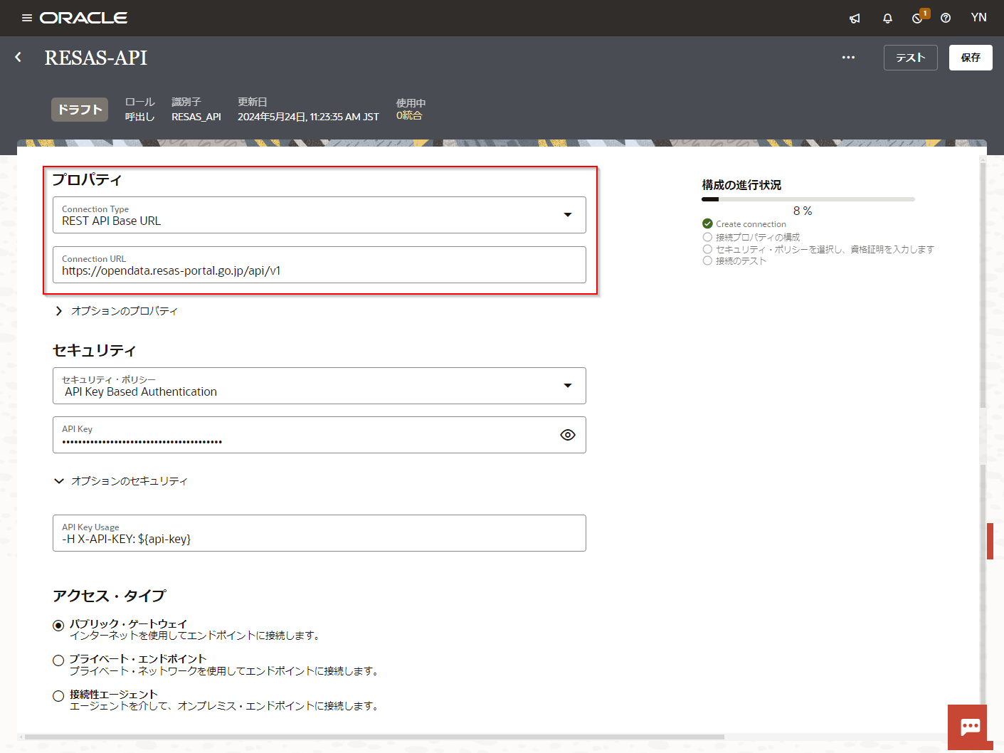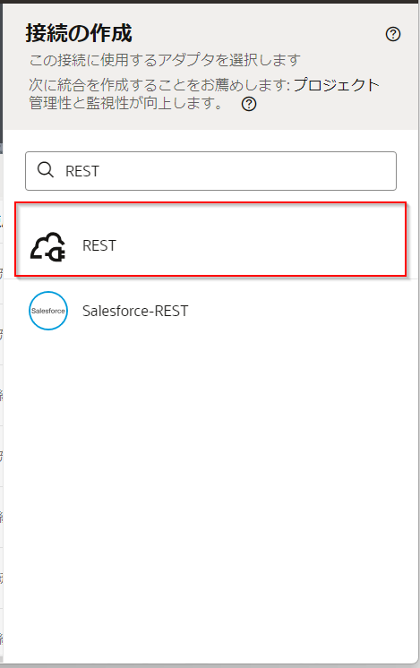 最初に作成するのは、 RESAS-API を呼び出すための REST アダプタ接続です。 REST アダプタ接続を作成する手順は次のとおりです。