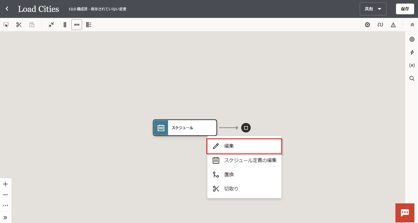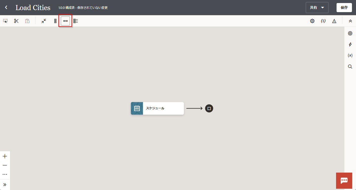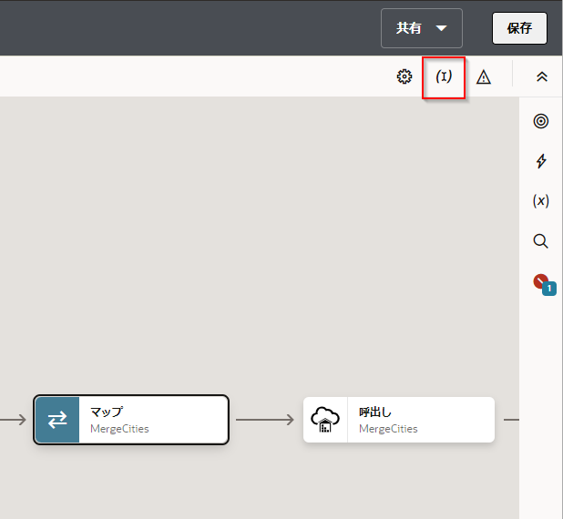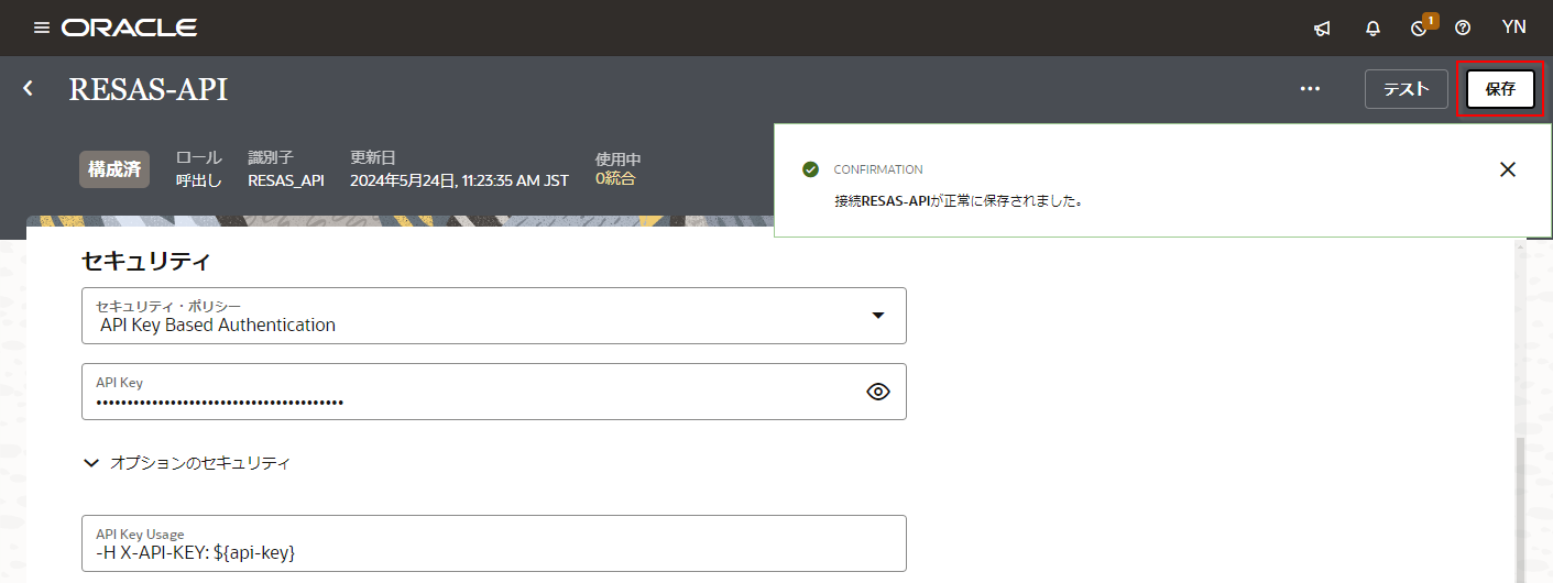 これで、RESAS-API の市区町村一覧のデータを Oracle ADW に保存するための設定が終わりました。 ここまでの設定を保存するために、ページの右上に表示される 「保存」 ボタンをクリックします。