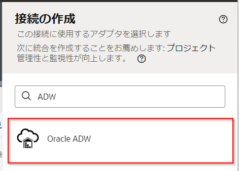 ADWと入力して、表示を絞り込みます。 表示された 「Oracle ADW」 アイコンをクリックします。