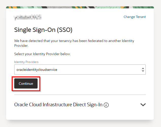 左側の Single Sign-On (SSO) の下のContinueをクリックします。