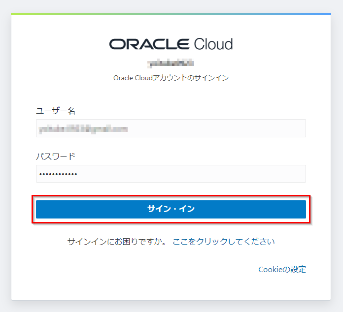 ユーザー名とパスワードを入力し、サイン・インをクリックします。