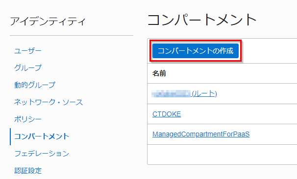 コンパートメントの作成をクリックします。