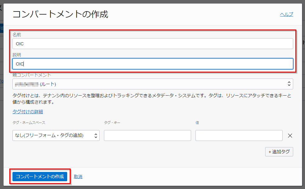 | 親コンパートメント | ルートコンパートメント「テナント名(ルート)」が選択されていることを確認 |