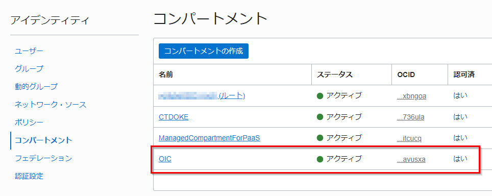 OIC コンパートメントが作成されることを確認します。