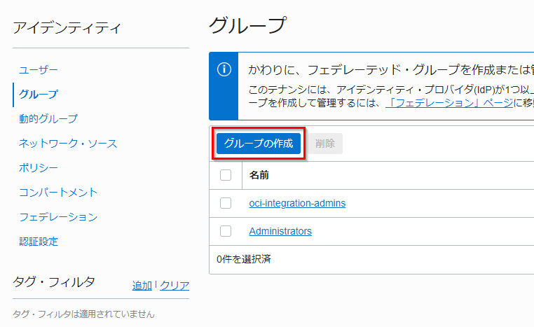 | 名前 | oci-integration-admins |