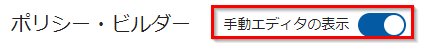 ポリシー・ビルダーにある手動エディタの表示をオンにします。