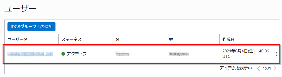 IDCS グループにユーザーが追加されることを確認します。