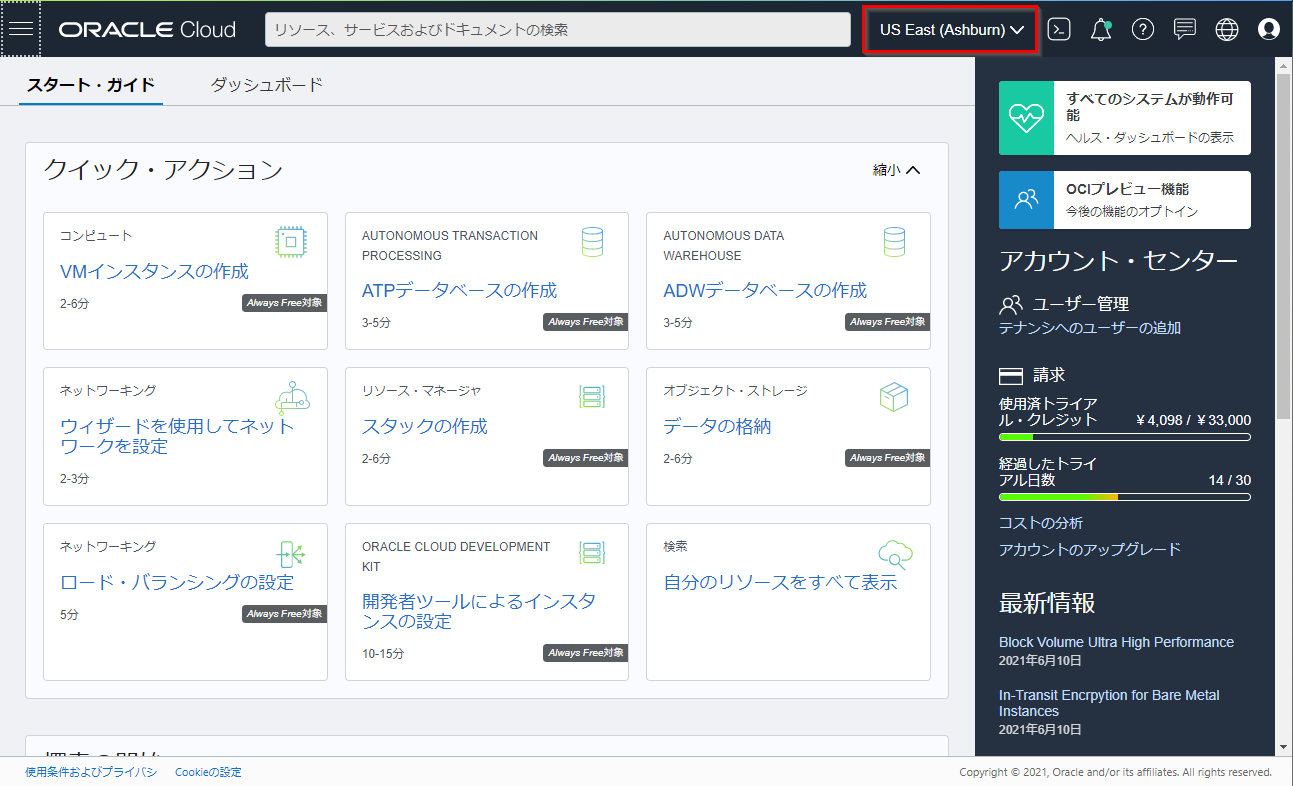 Oracle Cloud のアカウントを準備します。無料のトライアル環境(フリートライアル)と有料のクラウド・アカウントのご利用が可能です。
