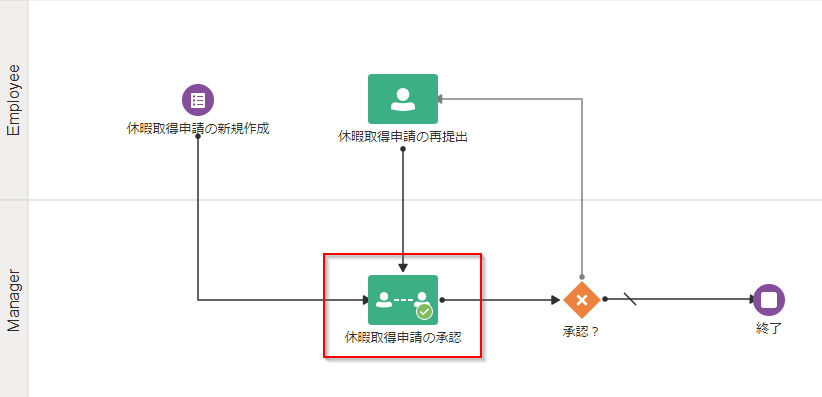 Task一覧の画面を表示し、「休暇取得申請の承認」をクリックします。