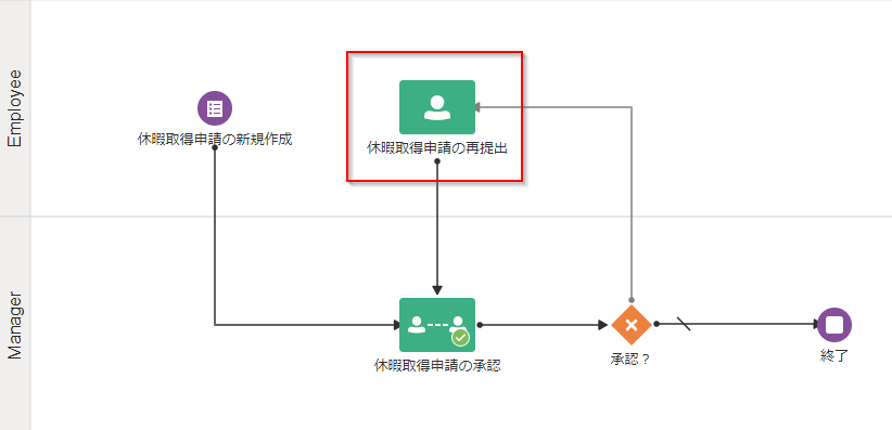 先ほど申請を再提出したので、今は再度承認のタスクに進んでいます。