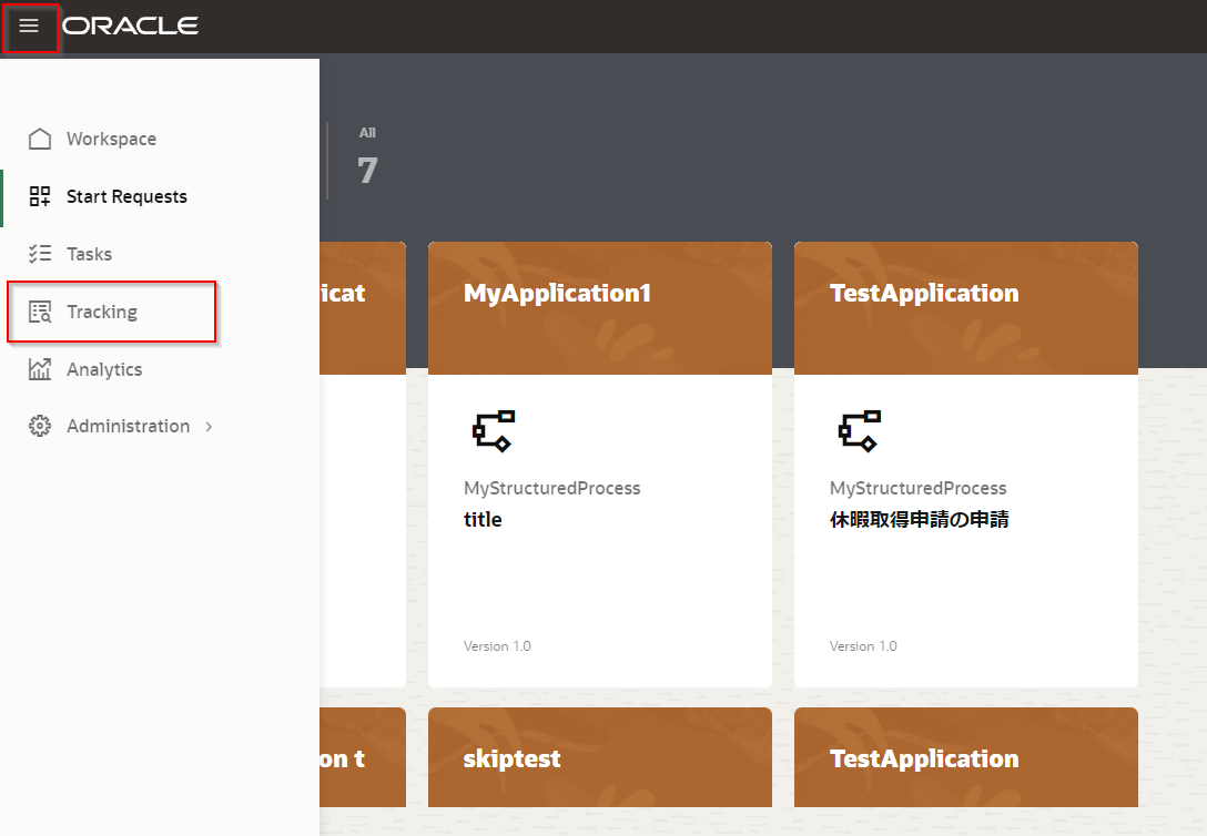 最後に終了したプロセスを確認します。 左のメニューから「Tracking」をクリックします。