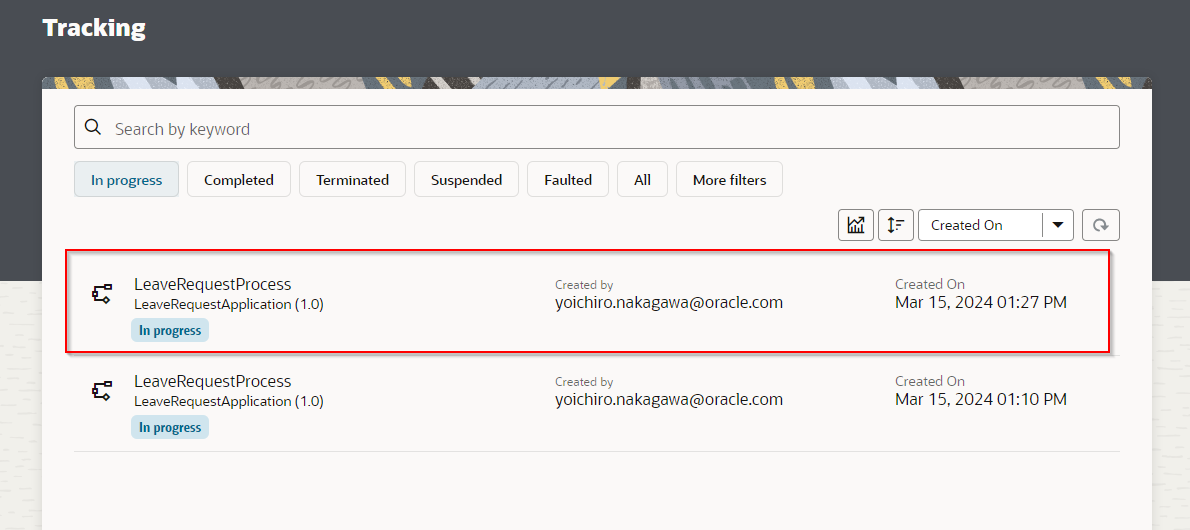 先ほど承認されたプロセスが表示されるのでクリックして開きます。