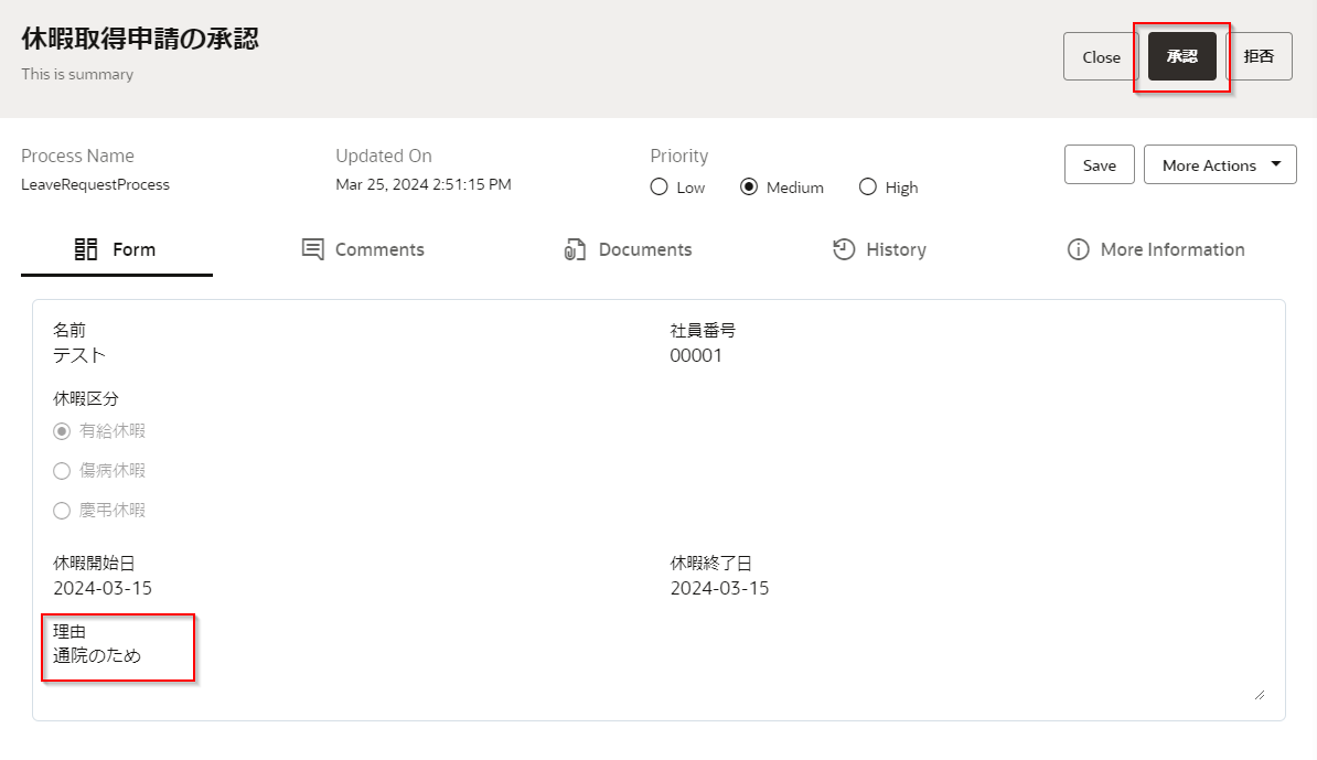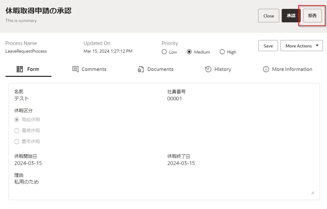 こちらの手順では最初に拒否の動作を確認した後、再申請で承認する手順を実行します。