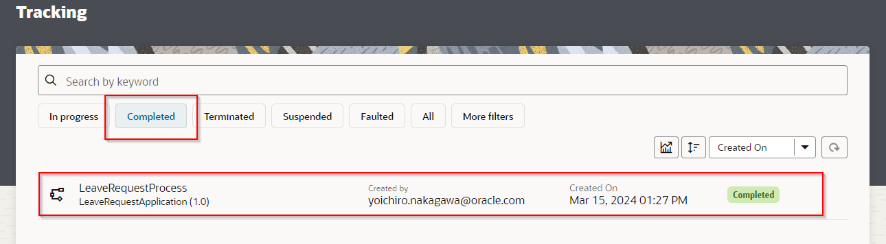 Completedをクリックすると、既に終了したプロセスを確認することができます。