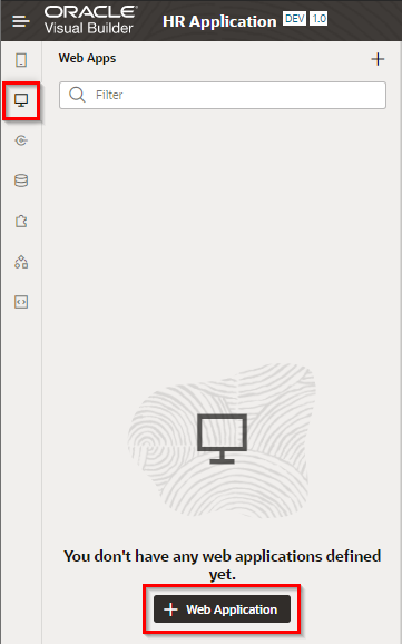 VBCS のビジュアル・アプリケーションは、1つ以上のWebアプリケーションまたはモバイル・アプリケーションを持ちます。 このチュートリアルでは、Webアプリケーションを作成します。