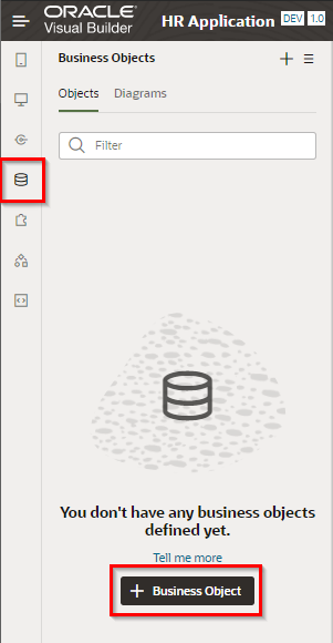 このパートでは、前のパートで作成したビジュアル・アプリケーションにビジネス・オブジェクトを作成します。 ビジネス・オブジェクトはアプリケーションで扱うデータを保持するためのリソースです。 ビジュアル・アプリケーションにビジネス・オブジェクトを作成すると、データを格納するためのデータベース・テーブルが自動的に作成され、そのデータを参照、作成、更新、削除するためのREST APIにアクセスできるようになります。