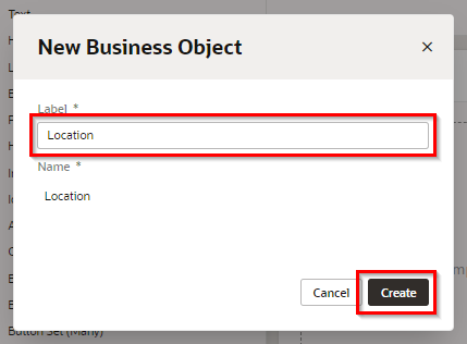 | 「Label」 | Location | 作成するビジネス・オブジェクトの表示名 |