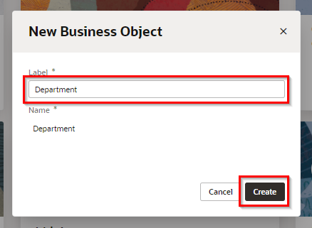 ここでは、部門を表すビジネス・オブジェクト Department を作成します。