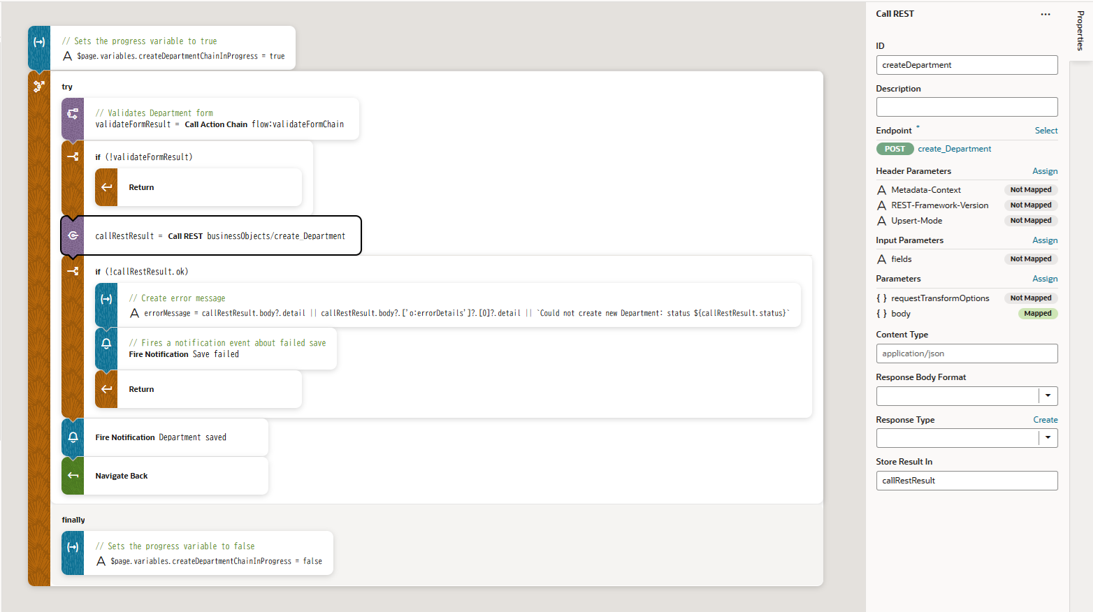 | CreateDepartment(部門レコードの作成) | ビジネス・オブジェクト Department のレコードを作成 |