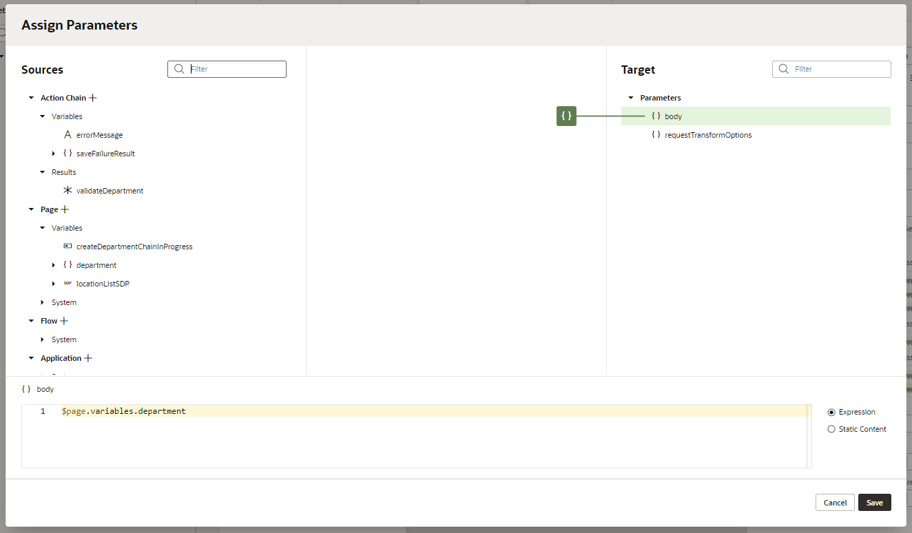 「Add Edit Page」 ダイアログ・ボックスの 「Select Update Endpoint」 ページでは、レコードを更新する際にコールする REST エンドポイントを指定します。 「Business Objects」 → 「Department」 をします。 「Next」 ボタンをクリックします。