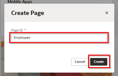 画面右側の 「Button label」 テキスト・フィールドの値を 「編集」 に変更します。 次に、「Page Title」 テキスト・フィールドの値を 「従業員レコードの作成」 に変更します。