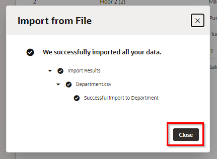 「Import from File」 ダイアログ・ボックスにインポートが成功したことを表すメッセージが表示されたら、 「Close」 ボタンをクリックします。