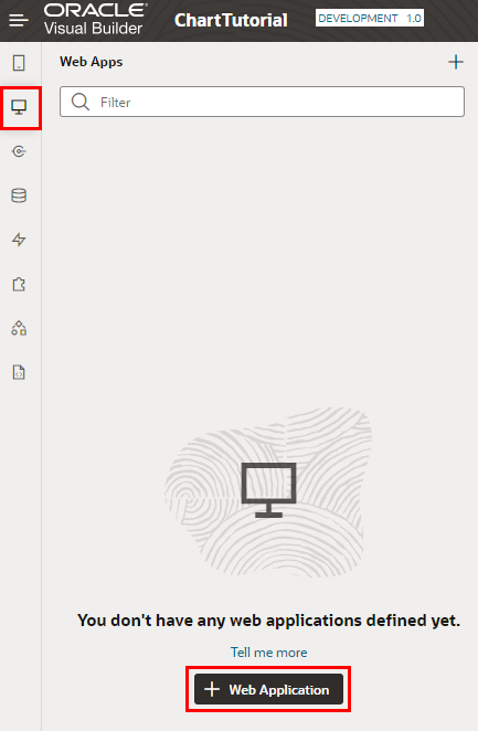 VBCS のビジュアル・アプリケーションは、1つ以上のWebアプリケーションまたはモバイル・アプリケーションを持ちます。 このチュートリアルでは、Webアプリケーションを作成します。
