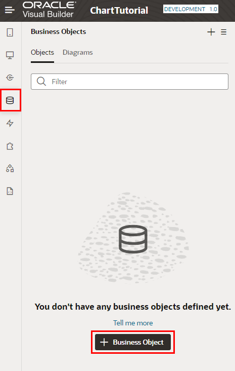 このパートでは、前のパートで作成したビジュアル・アプリケーションにビジネス・オブジェクトを作成します。 ビジネス・オブジェクトはアプリケーションで扱うデータを保持するためのリソースです。 ビジュアル・アプリケーションにビジネス・オブジェクトを作成すると、データを格納するためのデータベース・テーブルが自動的に作成され、そのデータを参照、作成、更新、削除するためのREST APIにアクセスできるようになります。