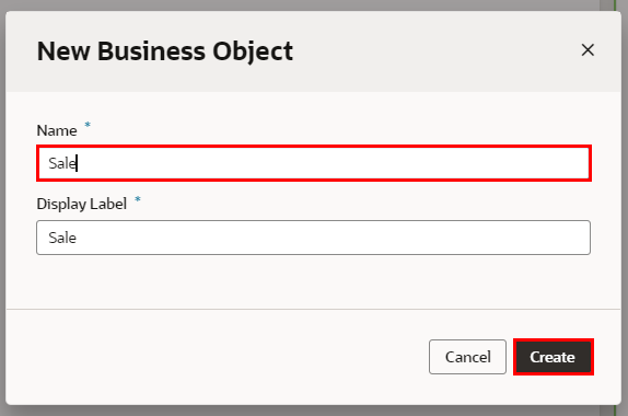 | 「Display Label」 | Sale | 作成するビジネス・オブジェクトの表示名。Nameと同じ値が自動的に設定されます。 |