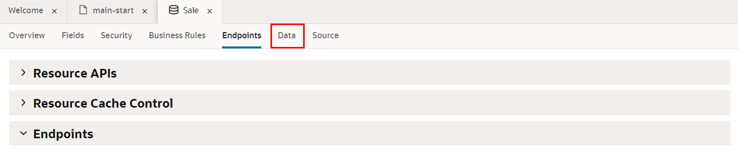 ビジネス・オブジェクトSaleの「Data」 タブをクリックします。