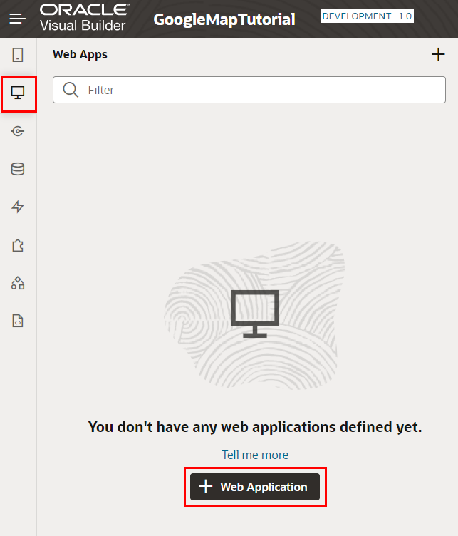VBCSのビジュアル・アプリケーションは、1つ以上のWebアプリケーションまたはモバイル・アプリケーションを持ちます。このチュートリアルでは、Webアプリケーションを作成します。