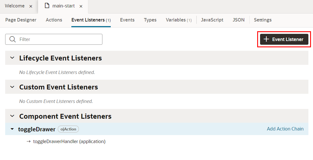 アプリケーション・デザイナの「Event Listeners」タブをクリックします。