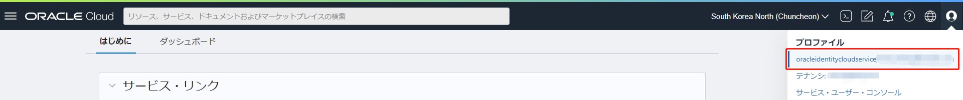 コンソールの画面右上にあるユーザー・プロファイルのユーザー情報をクリックします。