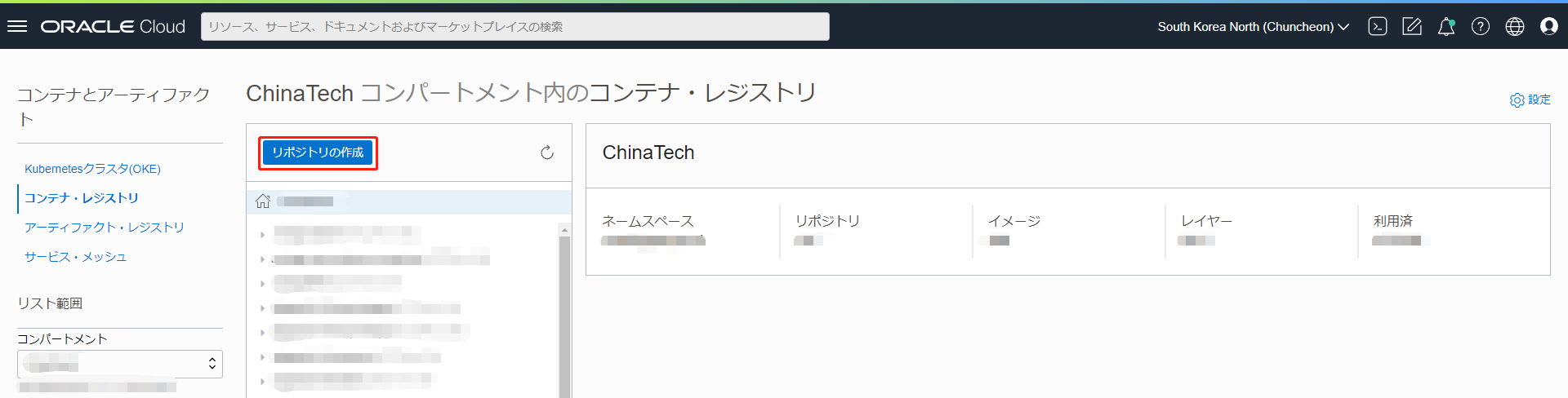 使用するコンパートメントを選択して、「リポジトリの作成」をクリックします。