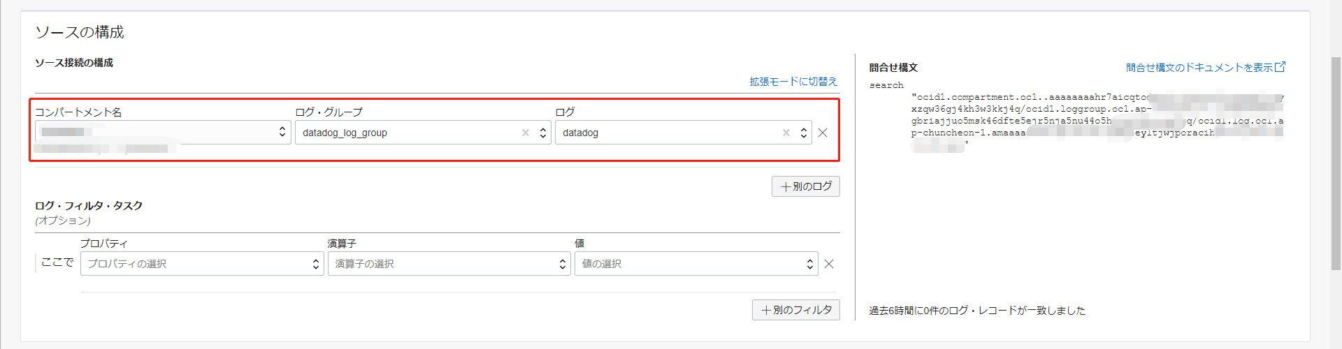- ソース接続の構成-ログ・グループ:datadog_log_group