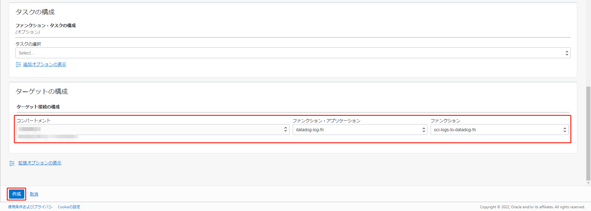 - ターゲット接続の構成-ファンクション:oci-logs-to-datadog-fn